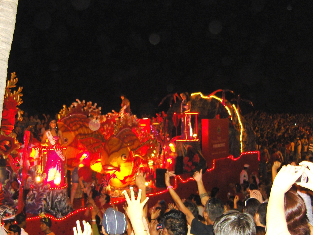 Nachdem wir am letzten Wochenende nach Südwesten an den Pazifik gefahren sind, hat es uns an diesem Wochenende in den Osten, an die Küste des Golfs von Mexiko verschlagen. In der historischen Hafenstadt Veracruz der ältesten Siedlung der Spanier in Mexiko findet jedes Jahr der traditionelle Karneval statt, der hier ganz besonders bunt, laut und lustig gefeiert wird und definitiv einen Besuch wert ist. Laut Reiseführer ist es der verrückteste Karneval zwischen New Orleans und Río. Das kann ich zwar nicht beurteilen, aber möglich zumindest geographisch 😉 ist es schon. Ähnlichkeit mit den Bildern, die man aus Río kennt, hat es allemal, nur leider kann man das mit meinen Fotos nicht wirklich gut zeigen.